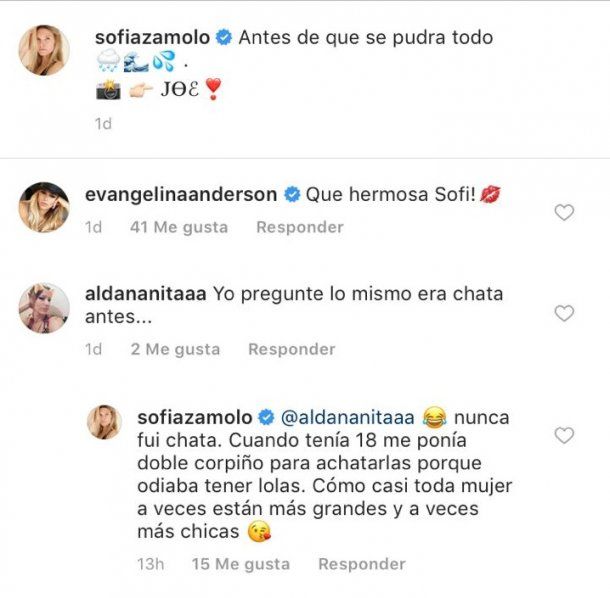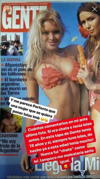 Como los comentarios continuaron, la propia Zámolo compartió fotos de su adolescencia y sus comienzos como modelo en el afán de demostrar que no había pasado por el quirófano: “En esta tapa de Gente tenía 18 años y sí, siempre tuve lolas, de hecho ¡ya a esta edad tenía mucho! Nunca fui ‘chata’ como leí. Tampoco me molestaría serlo igual”, indicó.