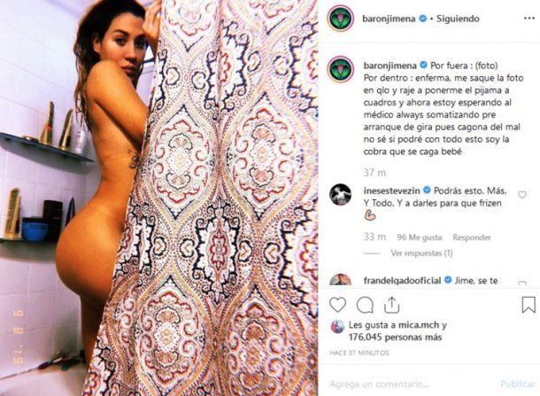 A poco de la salida de su último disco y de cara a una serie de shows que la tendrá de gira hasta fin de año, Jimena Barón hizo de las suyas publicando una foto desnuda, en la que solo se tapa con la cortina del baño.