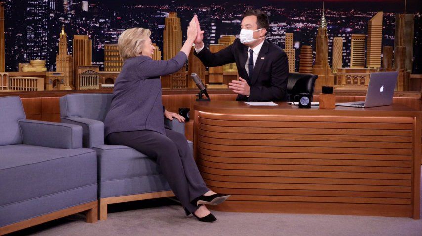 Jimmy Fallon, anfitrión de The Tonight Show de la cadena estadounidenseNBC, recibió a Hillary Clinton en una entrevista grabada el viernes con una máscara médica después de que la candidata demócrata a la presidencia de los Estados Unidos tomara un descanso de la campaña para recuperarse de una neumonía.
