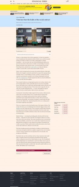 En un giro de 180 grados de sus habituales recomendaciones, el FT entiende que «la crisis de hoy pone al descubierto hasta qué punto muchas sociedades ricas no alcanzan este ideal. De la misma manera que la lucha por contener la pandemia ha puesto de manifiesto la falta de preparación de los sistemas de salud, la fragilidad de las economías de muchos países ha quedado expuesta«.