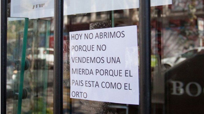 Cansada de esperar que un cliente pase por la puerta y compre un par de zapatos, una comerciante de Mar del Plata decidió cerrar momentáneamente su local y dejó un sugerente mensaje: «Hoy no abrimos porque no vendemos una mierda porque el país está como el orto».