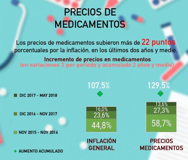 Los especialistas realizaron un relevamiento de más de 120 drogas de consumo masivo en donde se registró un incremento del orden del 130%, lo que corresponde a un alza de 22 puntos porcentuales mayor a la inflación del índice de la Capital Federal.