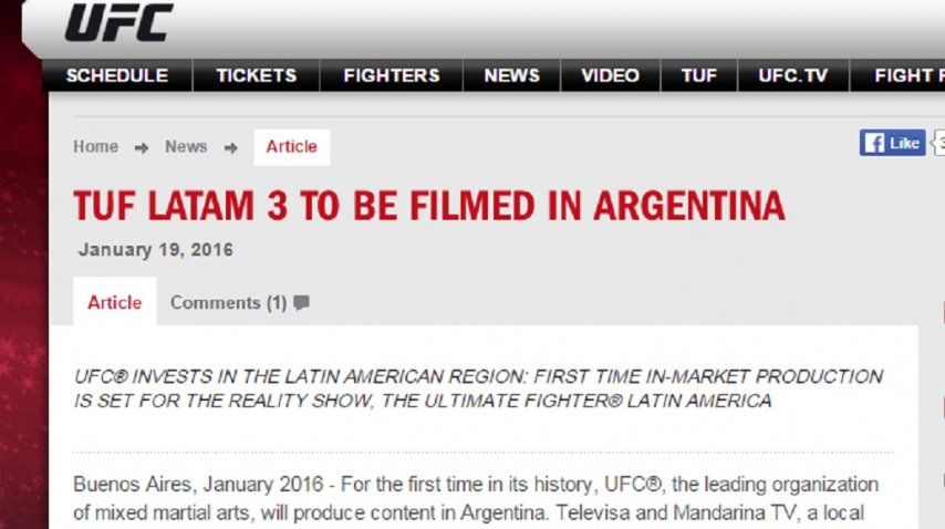 La tercera versión del reality de UFC para Latinoamérica tendrá lugar entonces en suelo argentino y la filmación llevará a cabo entre mayo y junio de este año. Se podrá ver a partir de agosto por UFC Network.