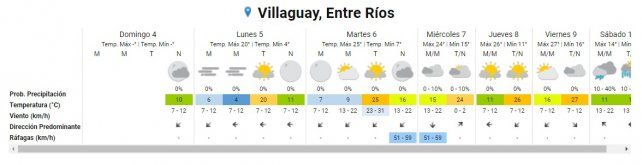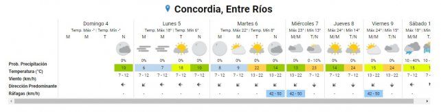 Concordia y la zona norte de Entre Ríos tendrán mínima de 6° y máxima de 18° y también cielo nublado, al igual que los departamentos del sur de la provincia, que registrarán una amplitud térmica oscilante entre los 5° de mínima y los 20° de máxima.