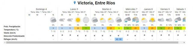 El sur entrerriano se moverá con promedios de 14° en la primera mitad del día y hasta 25° en la tarde. Para la jornada del miércoles se pronostican lluvias aisladas y chaparrones en departamentos como Victoria, Gualeguay y Gualeguaychú.