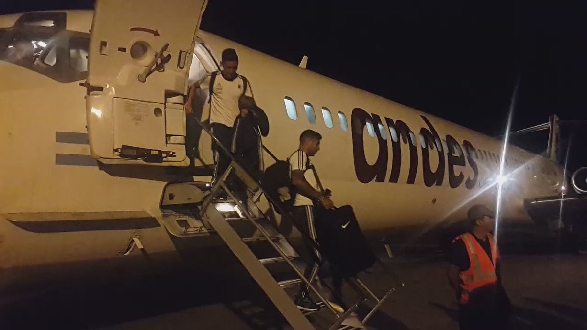 El vuelo chárter que trasladó a la delegación que conduce Edgardo Bauza partió desde Buenos Aires a las 14 y sufrió un pequeño retraso en Manaos, Brasil, donde aterrizó para hacer una escala técnica, por lo que llegó una hora después de lo esperado a El Vigía (ocho horas en vez de las siete estimadas inicialmente).